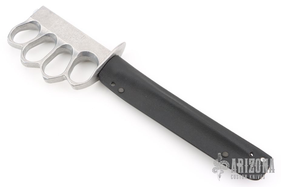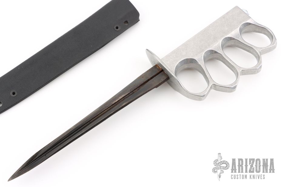 LF&C 1918 Cast Aluminum Knuckle Handle with chisel ground spike blade. .335" blade stock at the hilt, and .848" blade depth. Comes with kydek sheath. New from maker!