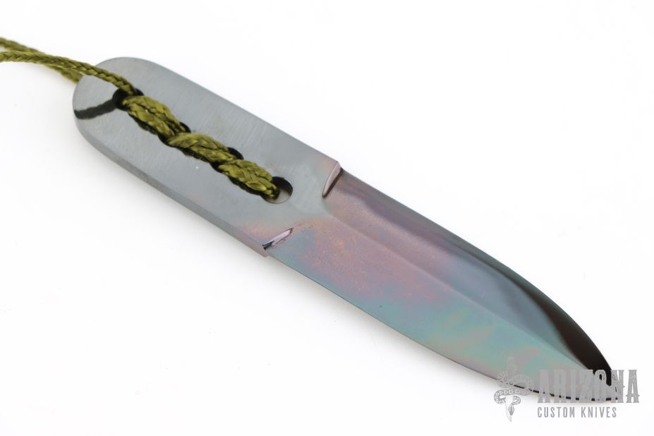This double edged lapel dagger has a gun blued finish, .136" blade stock and .82" blade depth. Comes with a kydex sheath. New from maker.