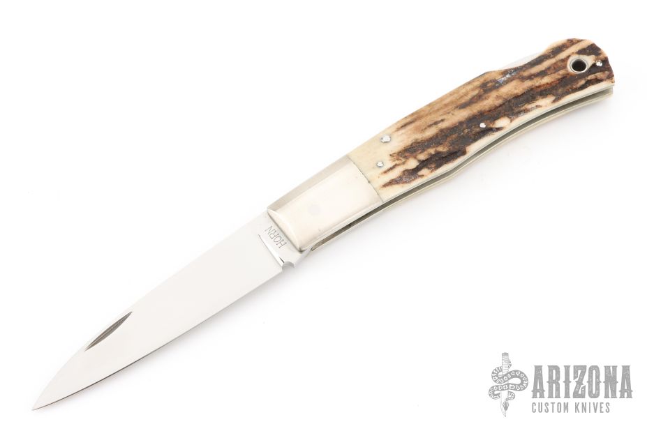 Considered a knife making legend, Jess Horn is primarily known for very high quality, top notch material custom folding knives. Jess Horn has been making knives since 1968 and, while occasionally making fixed blades, he is best known for his investor quality folders, working folders, and collectible period pieces. Jess's linerlock and slip joint folders are typically made with ATS-34 and 154CM stainless steel, and he uses a variety of natural handle materials, though favoring fossil Ivories and Stag for many of his knives. He was a longstanding voting member of the Knife Makers Guild. Jess passed away in 2016.