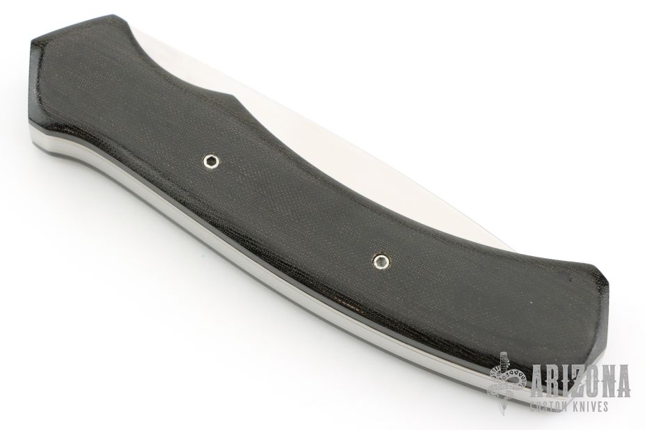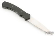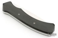 This left-handed Sidewinder II scale-release auto by Rainy Vallotton features a satin finished drop point blade. The handle has black linen micarta scales, titanium liners, and stainless steel backspacer. #245. Nice action, lockup and blade seating. Comes with a zippered case. Has some light scuffs and scratches, great condition otherwise.