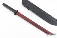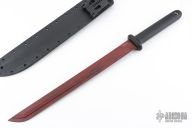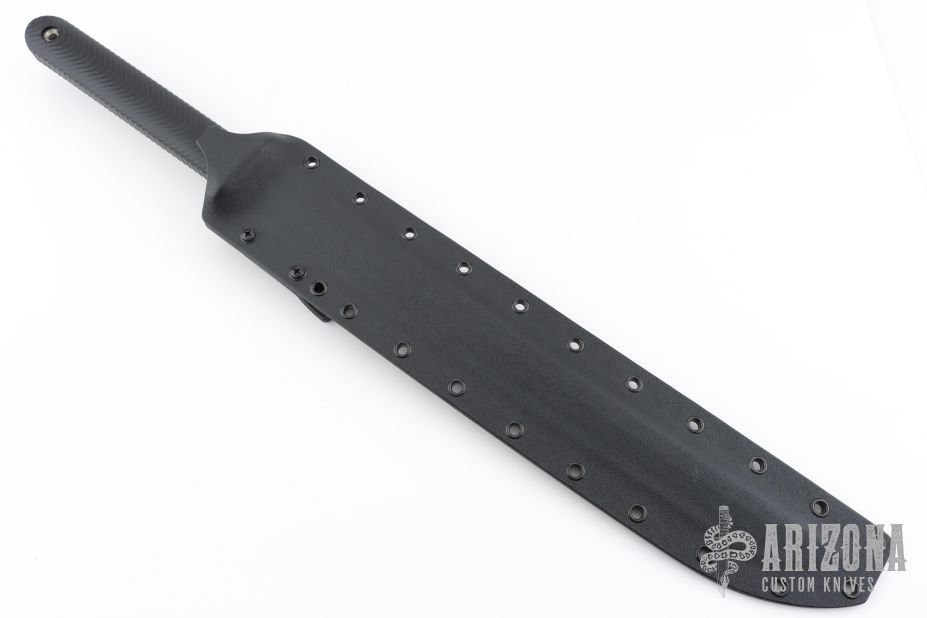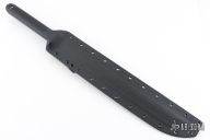 This TNT-15 by Scrap Yard Knives has a Shallow Hollow Bevel featuring our Busse's CBT (Corrugated Bevel Technology) which allows for more clearance behind the edge. The Resiprene C handle has a proven track record of over 23 years with no end in sight! Resiprene C is well known for its high durability, shock-absorbing, and slip-resistant qualities. The oval handle has flats on top and bottom which assist in edge indexing in all conditions. This one has a red/black coated blade, .258" blade stock and 1.375" blade depth, hidden tang construction. Comes with a custom Kydex sheath by BuyBrown. Has some scuff and scratches, otherwise good condition.