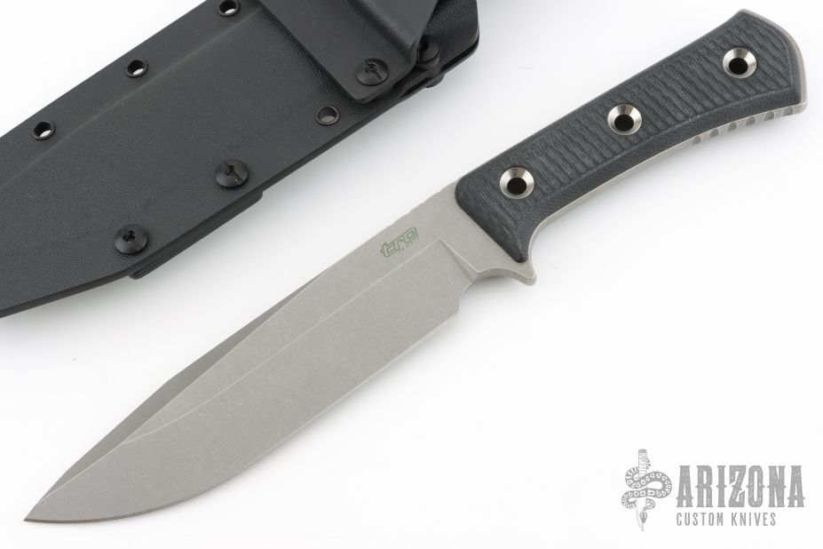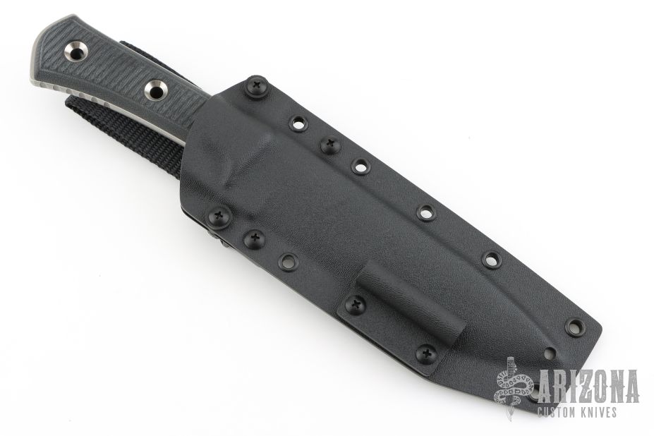NAME: Apocalypse STEEL: Elmax FINISH: Stonewash BLADE LENGTH: 172mm OVERALL LENGTH: 300mm THICKNESS: 6.5 mm HANDLE: BCM SHEATH: Kydex WEIGHT: 398g Comes with original box, sheath and papers. Excellent condition. #00499