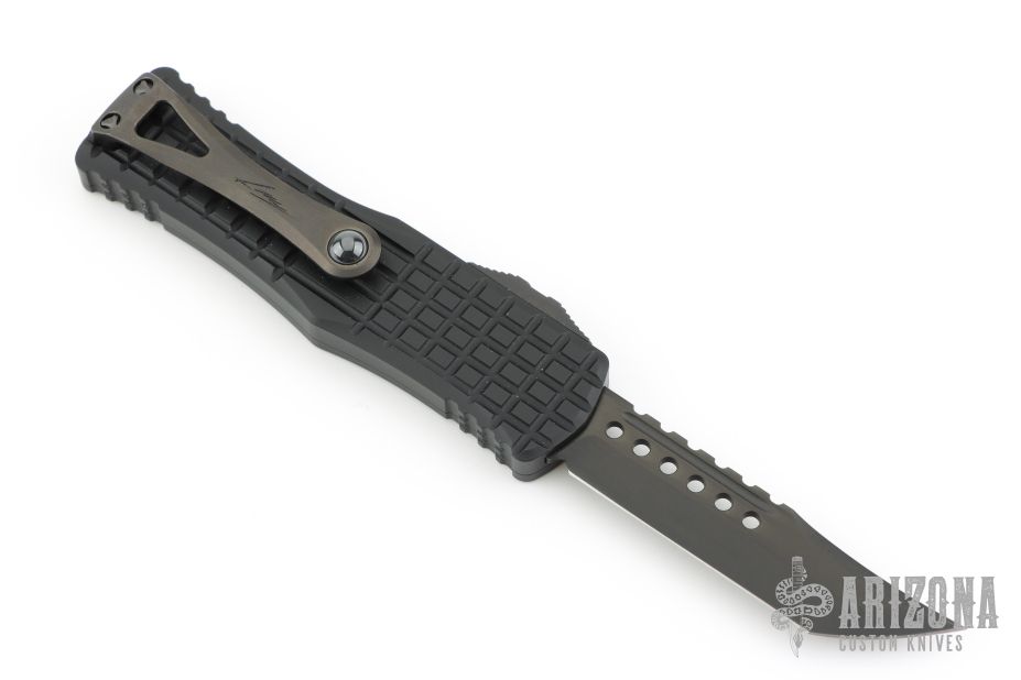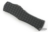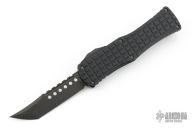 This Hera by Microtech Knives features a Hellhound DLC stonewashed blade with fullers. The handle has a black aluminum frame with Frag pattern, tip down DLC titanium clip with ceramic ball inset. Dated 01/2023 and s/n 466. Comes with original box and papers. Excellent condition.