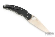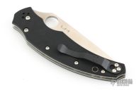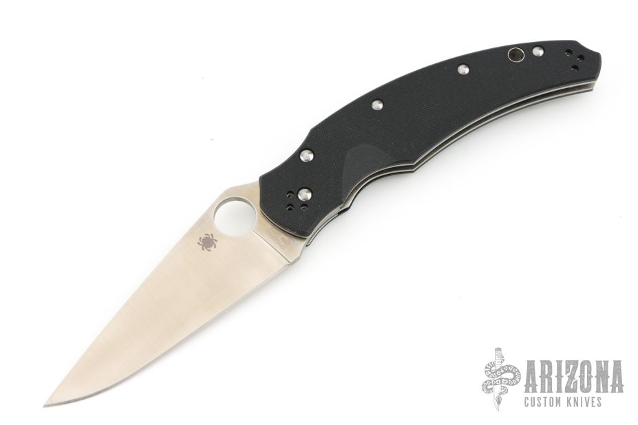 The 3.75" blade opens easily thanks to Spyderco's signature ambidextrous opening hole. Constructed of S30V steel it promises impressive edge retention, and the full flat grind ensures low friction cutting performance. Thanks to the integrated finger choil that extends usable handle length, another common Spyderco design element, and a swooping curve for the thumb, the user can choke up on the blade for fine control.