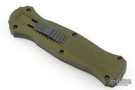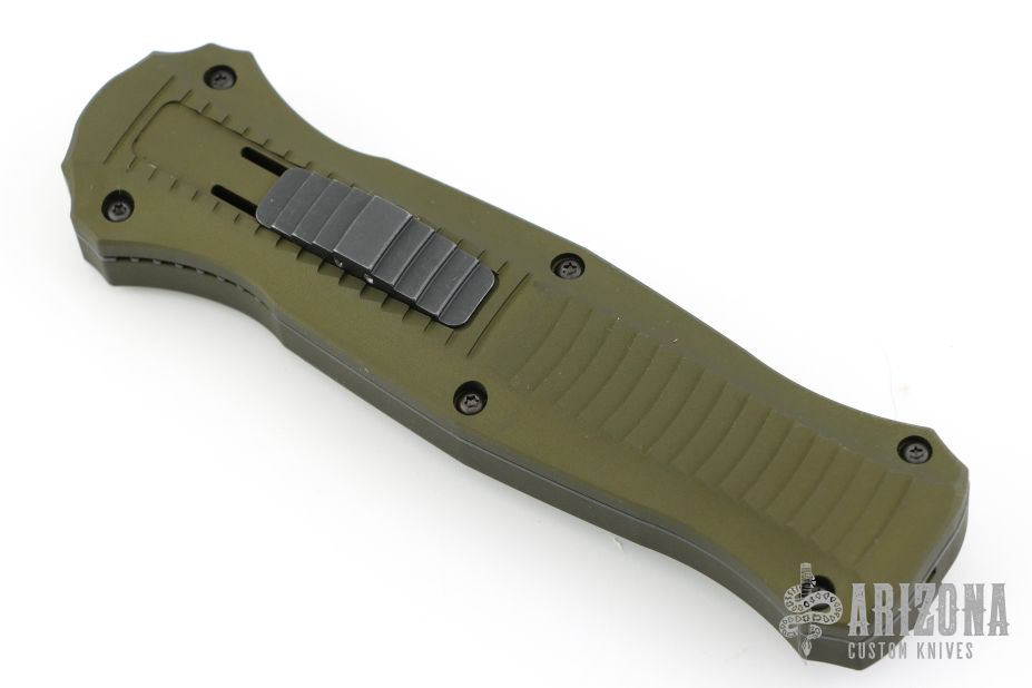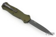 The Benchmade Infidel is outfitted with a durable lightweight aluminum handle and a double-edged dagger blade. A front loaded firing button provides smooth double action deployment and retraction with an easy to use design. Item includes a deep-carry pocket clip for tip-down carry. Features: