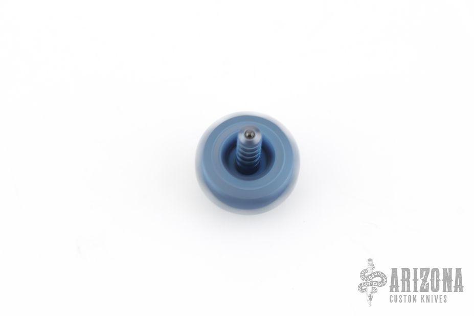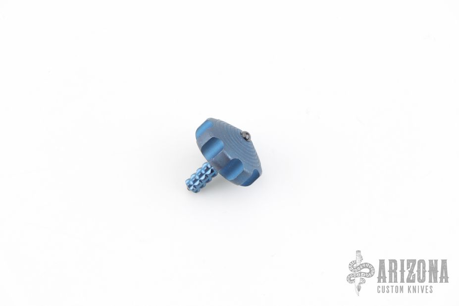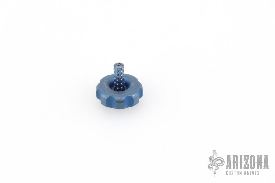This Mini Spin Top by Marfione Custom Knives is made from Asteria blue anodized titanium. Two piece design. Comes with original box. Excellent condition.