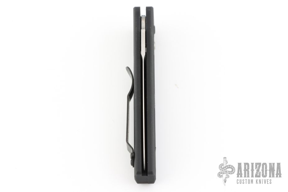 This 3551 Mini Stimulus features a stonewashed spear point blade with false top edge and a black aluminum handle with push button and safety, tip up or down reversible black stainless steel clip, lanyard hole at the butt. Excellent condition. Comes with original box and papers.