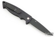 This side opening automatic features a machined aluminum handle with a BT2 black coated plain edge blade. Includes original box. Excellent condition