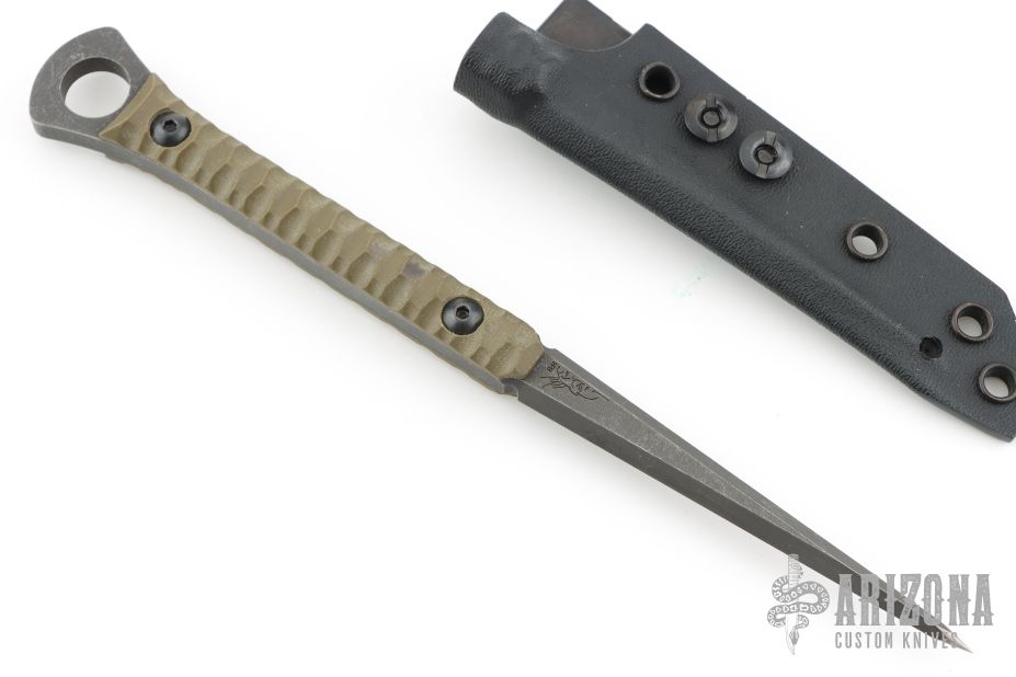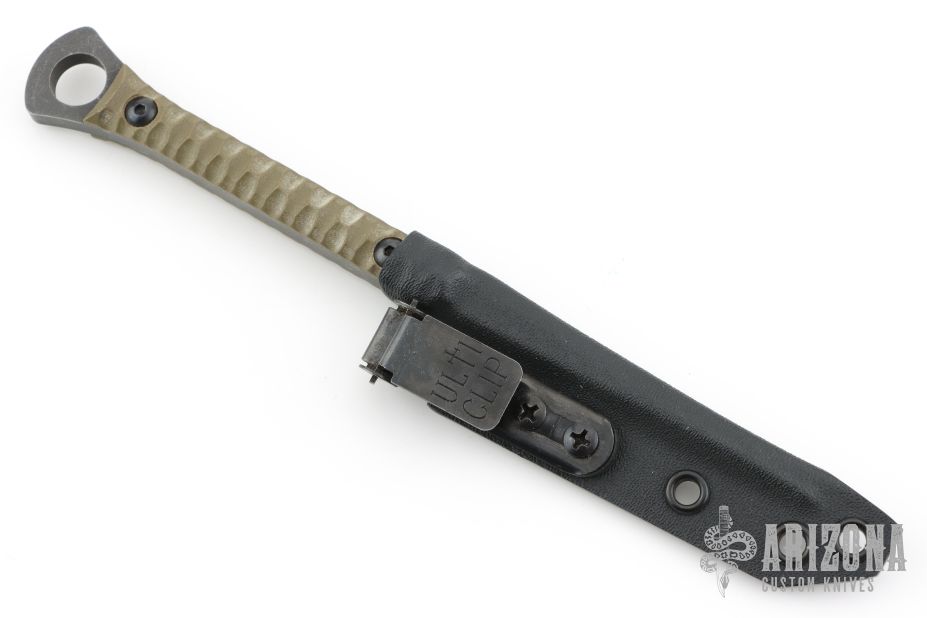 This Cardiac Spike by Half Face blades. They have cerakoted S35VN blades with green G-10 handle. Comes with kydex sheath with belt clip. Excellent condition.