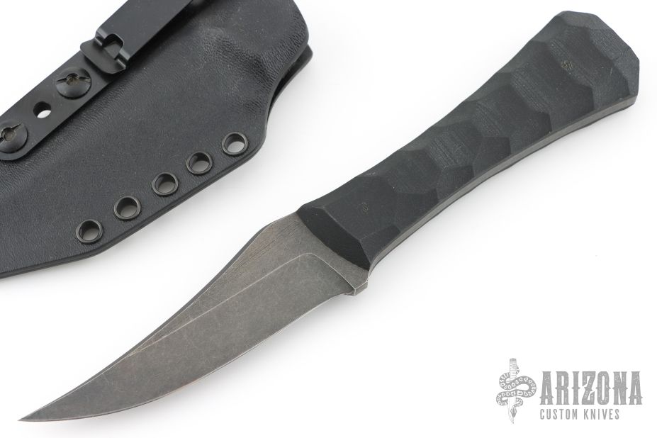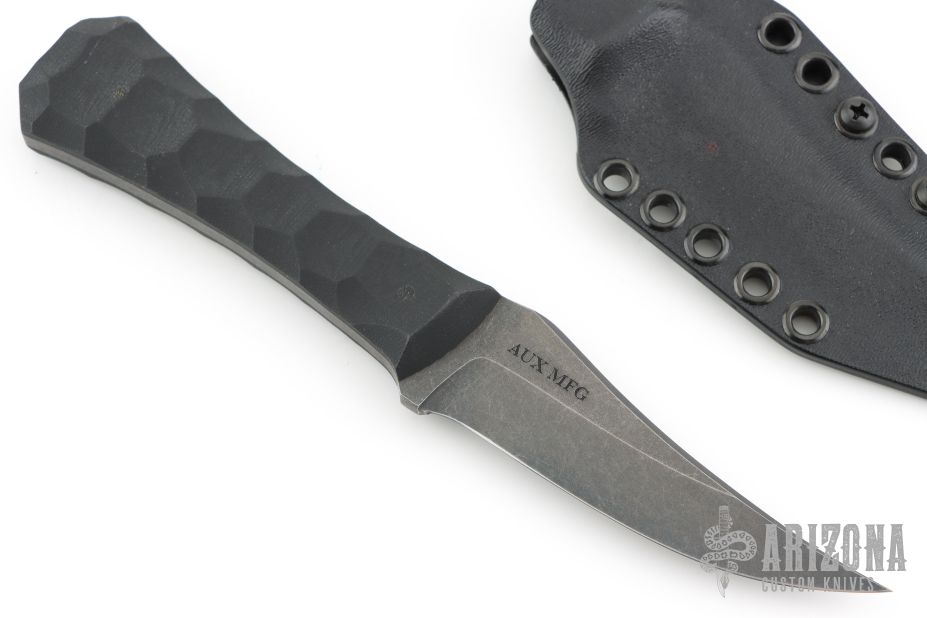 This Pocket Bowie by Auxiliary Manufacturing features an acid tumbled blade with .197" blade stock and 1.170" blade depth. The handle has black G-10 scales. Comes with a kydex sheath with clip. Excellent condition. Comes with original box and COA dated 12/2024.