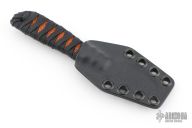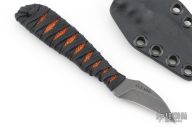 This Tsume by Auxiliary Manufacturing features an acid tumbled blade .110" blade stock and .725" blade depth. The handle has epoxied black cord wrap over Stingray. Comes with a kydex neck sheath. Comes with original box and COA. Excellent condition.