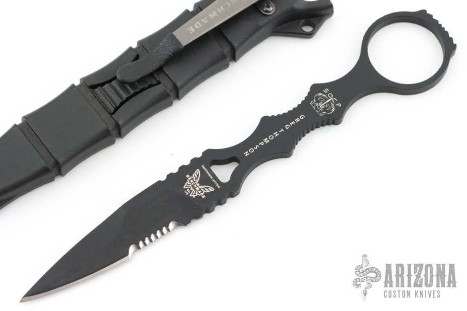 The Benchmade 176 SOCP Dagger is a Greg Thompson design. He is the creator of the Special Operations Combatives Program (SOCP) and has years of training and experience to draw from. This skeletonized dagger has a finger loop that makes it easy to deploy and use in quick order. It is made from 440C stainless steel with a black finish. The 178 SOCP includes a black sheath with clip.