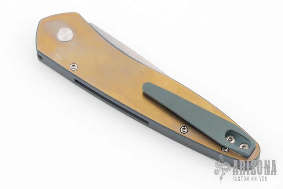 This Newport Titanium Custom by Pro-Tech Knives features a stonewash finished spear point blade. The handle has an anodized and satin finished titanium frame with abalone inlaid push button, milled and anodized titanium tip up clip. Comes with original box pouch and papers. Has a couple light scuffs, excellent condition otherwise.