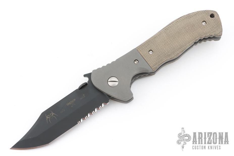 The demand for Ernest Emerson Custom Knives is so high that Mr. Emerson can never fill the supply with his hand made custom creations. This has created a market opportunity for other craftsmen to take Emerson factory knives and turn them into beautiful customized, modified versions of Emerson Knives. However, these are not handmade Ernest Emerson custom knives and as a result they are available at a more affordable price. Any custom or after-market modifications voids any and all stated or implied warranty by Emerson Knives. Any defects or warranty issues must be addressed by the individuals that modified the original Emerson factory knife. These Po Boy conversions and all modified versions of these knives are after-market conversions of Emerson Knives, Inc. factory production knives and that none of these modifications were performed by Ernest Emerson or Emerson Knives, Inc. Any modification to any Emerson Knife voids the Warranty!