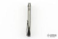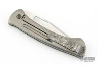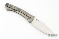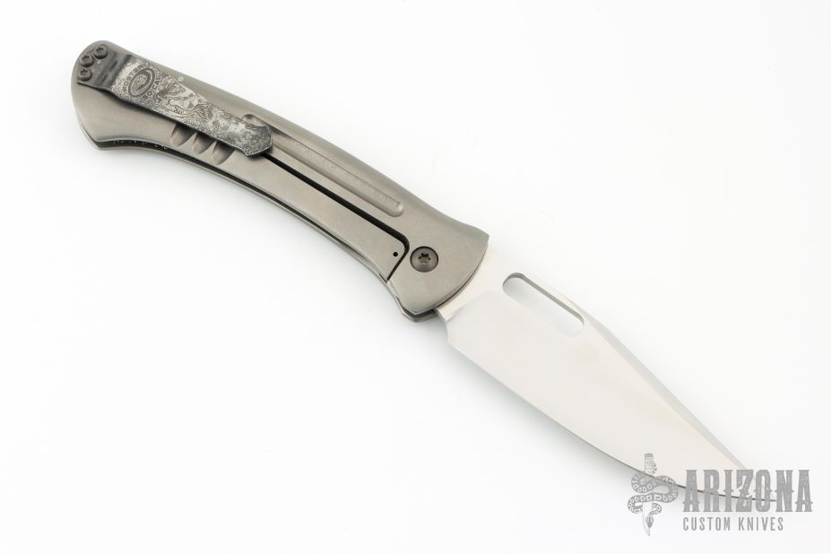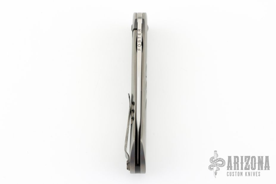 This Narwhal by Kevin Foster features a hand rub satin finished tanto blade with swedge and thumb hole. The handle has a carbon fiber inlaid pivot, and bead blasted titanium frame with a Steel Flame tip up clip positioned for right-hand carry.  Carbon fiber backspacer. Comes in a knife case. Nice blade seating, detent and lock up.  Excellent Condition.