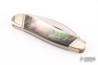 This knife by Case features mirror finished blades with nail nicks. The handle has nickel silver bolsters, pearl covers, brass liners and steel springs. Marked 1 of 5 on the blade. Has some light scratches and patina. Excellent condition otherwise.