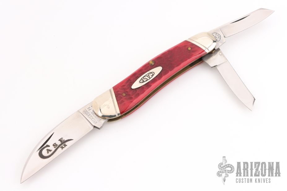 W.R. Case & Sons 6355 3-Blade Seahorse Splitback Whittler 1992 XX Tested #0000 Red Jig Bone
