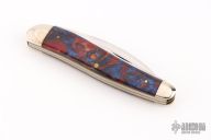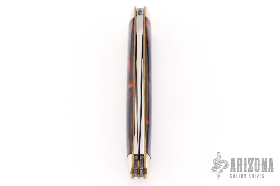 This knife by Case features mirror finished blades with nail nicks. The handle has nickel silver bolsters, acrylic covers, brass liners and steel springs. Marked #0000 on the bolster. Has some light scratches and patina. Excellent condition otherwise.