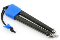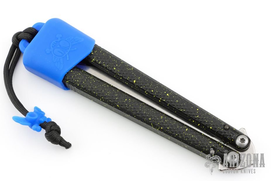 The Talisong Z comes with a blue Bali-Boot that was developed as a safe and innovative way to carry your latchless balisong. It is soft and flexible, and won't mar up the handles. It is paired with a paracord lanyard and blue silicone fly bead. The lanyard can be threaded through a belt and used as a static cord, or you can just slip the entire thing into your pocket.