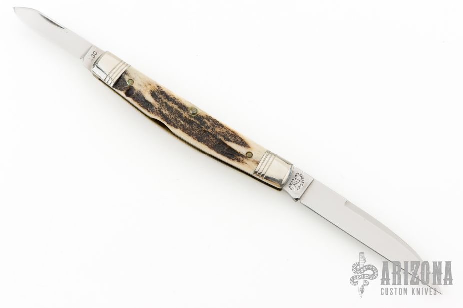 The GEC #13 Clerk is a perfect example a true American craftsmanship. This traditional slipjoint features beautiful sambar stag along with a main wharncliffe blade and a secondary pen blade. Get your hands on the Clerk and show off your American pride in style!