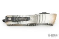 This Combat Troodon OTF automatic features a D/E blade with one fully serrated edge. The handle is composed of a Sandtrooper finished aluminum frame. Stainless steel clip. Glass breaker. 03/2022, S/N 013. Excellent condition. Comes with original box and papers.