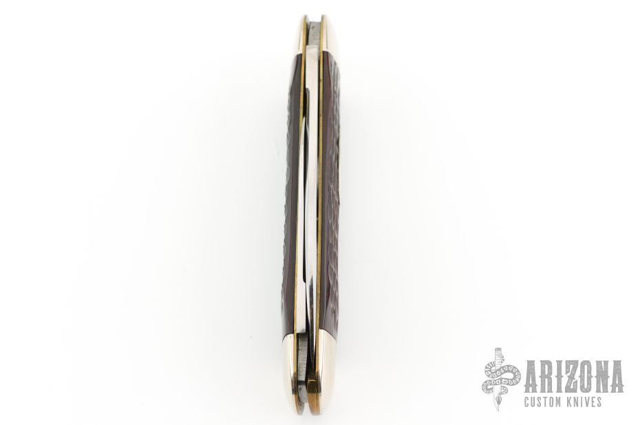 This Elephant Toe slipjoint by Case Knives has two mirror polished blades with nail nicks. The handle has nickel silver bolsters, jigged bone covers, brass liners and pins, stainless steel spring. Has some scratches and patina. Great condition for its age and otherwise.