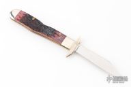 This Cheetah lock back folder from Case Knives features a clip point mirror polished blade with nail nick. The handle has nickel silver bolsters, front and rear, swing guard, and the scales are jigged bone over brass liners. Comes in the original round tin. . Has a couple light scratches, excellent condition otherwise.