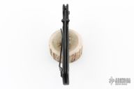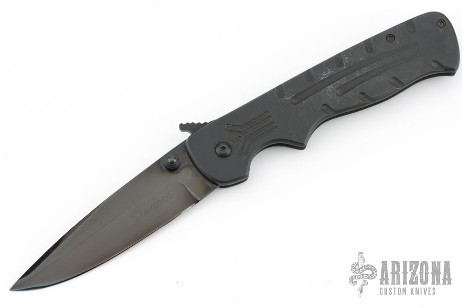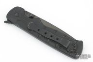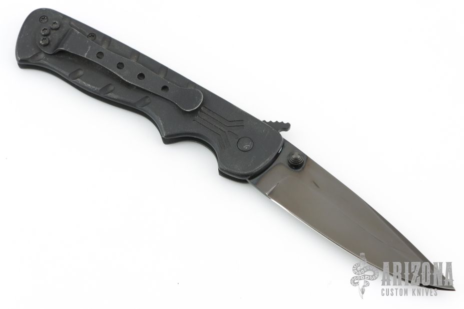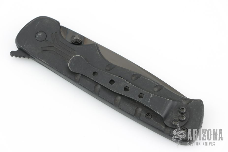 This Crawford Lock Folder by Crawford Knives features a black blade with dual thumbstuds. The handle has milled black titanium scales with a black stainless steel backspacer with notched thumbrest, tip up black titanium clip. Smooth action and nice blade seating. Has some scuffs and scratches, otherwise good condition.