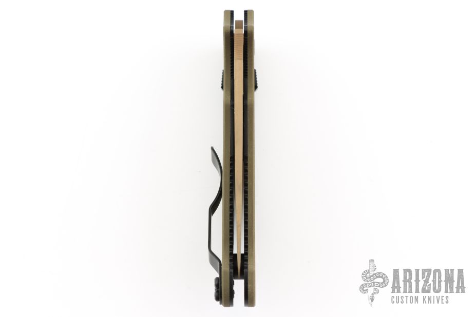 In keeping with the no-nonsense tactical spirit of its blade coating, the handle of this elite knife proudly showcases olive drab G-10 scales, black-coated liners and hardware, and a black-coated pocket clip that is reversible for left or right-side tip-up carry. The scales feature a peel-ply texture that complements the knife's ergonomic handle shape and the jimping (textured grooves) on its stainless steel liners to ensure a secure, positive grip.