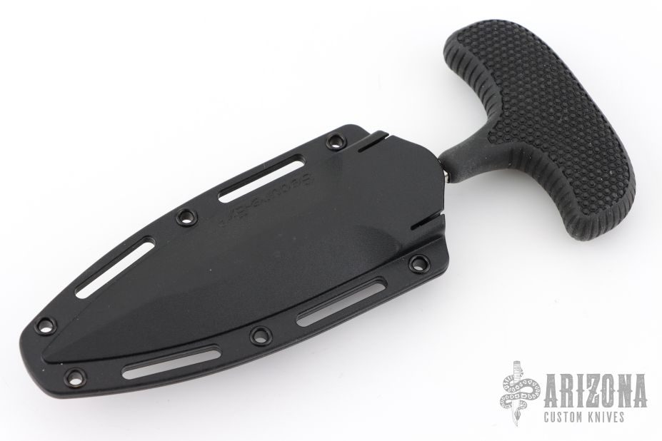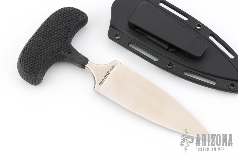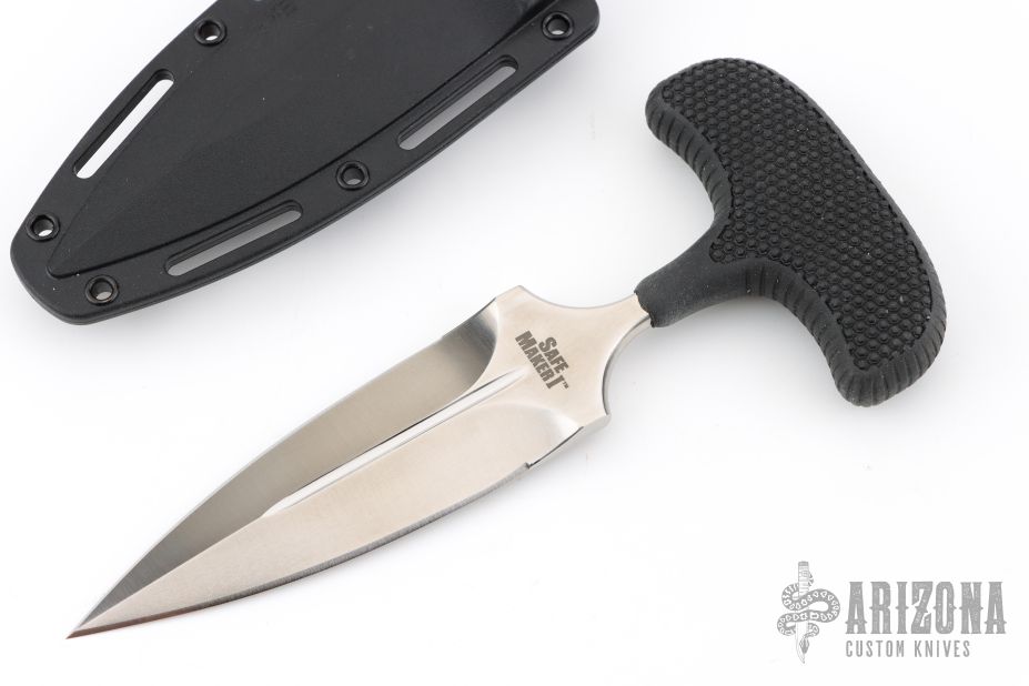 This Safe Maker I push dagger from Cold Steel has a satin finished chisel ground spear point blade with hollow ground backside and fuller on the front. Handle is non-slip. Excellent condition. Comes with a Secure-EX sheath with belt clip.