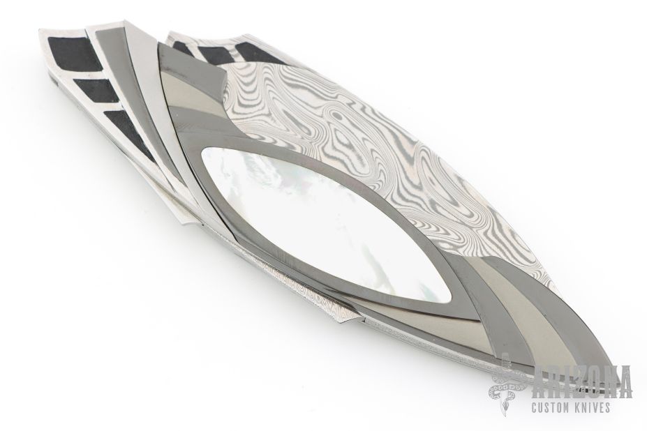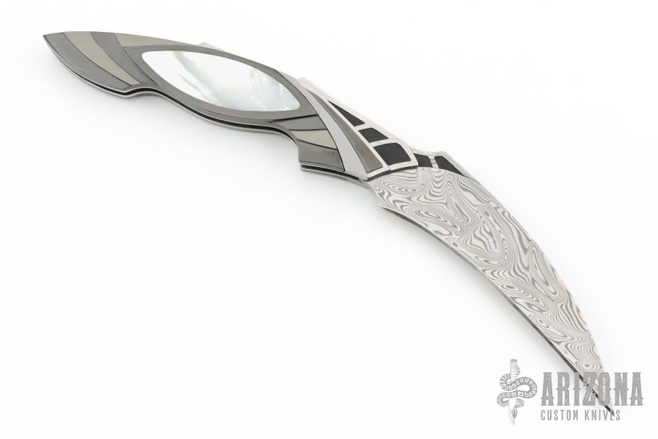 Home Products Damasteel Hawkbill Auto - Zirconium & Pearl