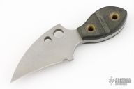 This Plan C from Mr. Horton features a stonewashed chisel ground blade with swedge, .195" blade stock and 1.472" blade depth, full tang construction. The handle has black paper micarta scales. Excellent condition.