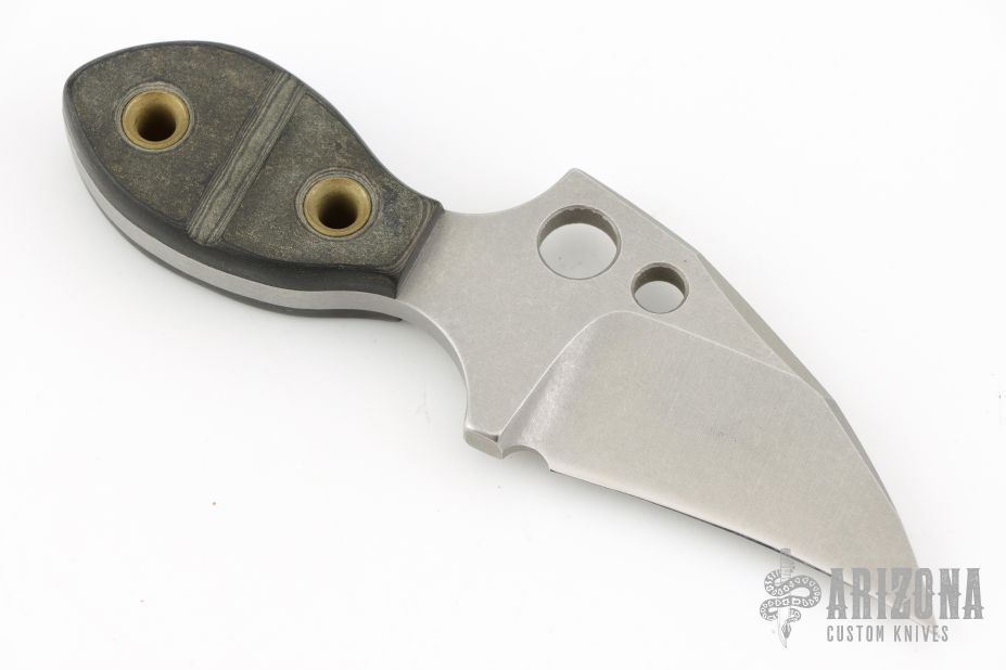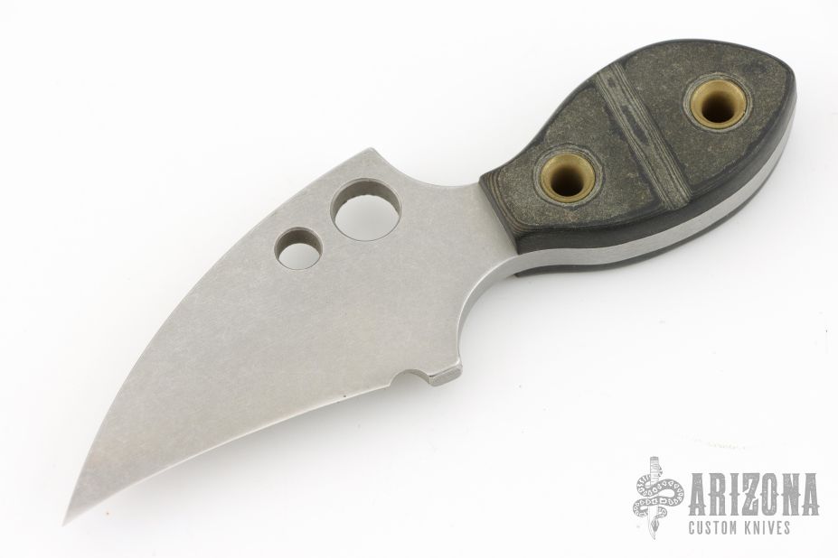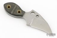 This Plan C from Mr. Horton features a black chisel ground blade with swedge, .193" blade stock and 1.456" blade depth, full tang construction. The handle has natural canvas micarta scales. Excellent condition.