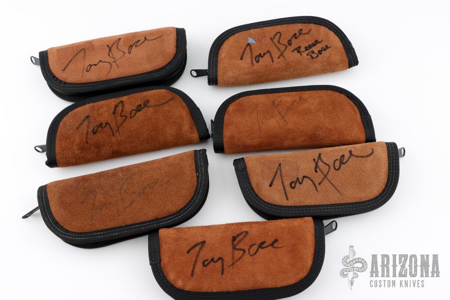 Tony/Reese Bose Signed Case Knives Zipper Cases - Lot of 7. 7" external 6" internal dimensions. 6 Signed by Tony, 1 Signed by Tony and Reese.
