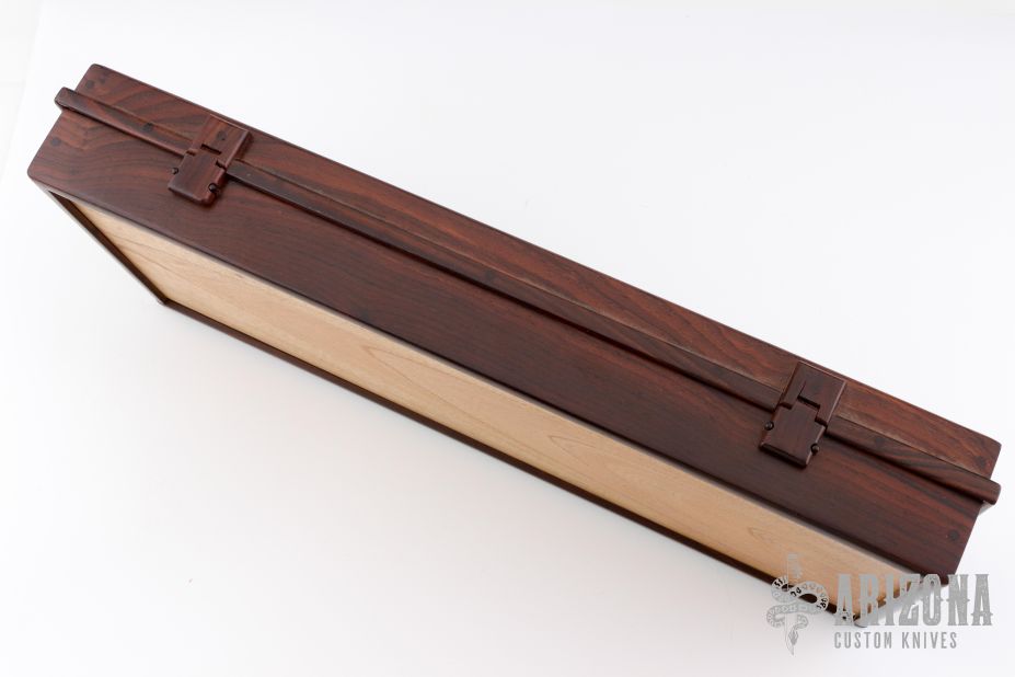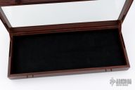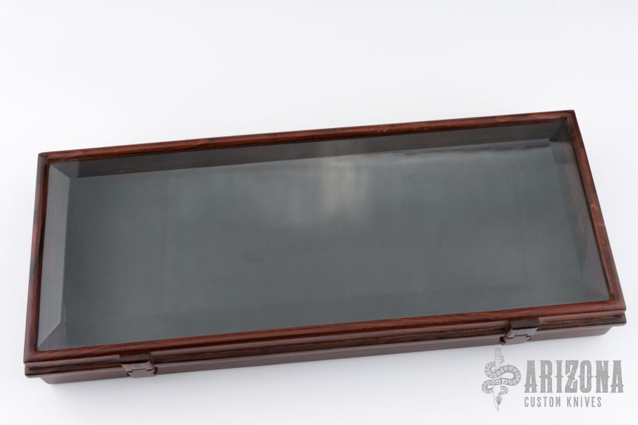 20" x 8" Wooden/glass display case. Very nice work, with all wood clasps/struts, and pinned construction. Has some wear, and is a little dirty, but is very well-made. Great condition.