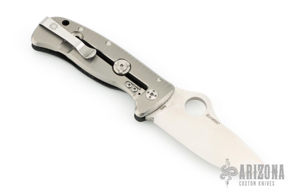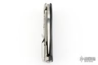 The Lil’ LionSpy’s two-piece handle construction consists of a black G-10 scale and a titanium scale that serves as the basis of the knife’s stout Reeve Integral Lock (R.I.L.) mechanism. Both scales are CNC machined with a series of textured grooves to ensure a positive grip and are joined by an open-backed design that reduces weight and simplifies cleaning. A compact pocket clip attached to the titanium scale supports right-side, tip-up orientation for convenient carry and easy access.