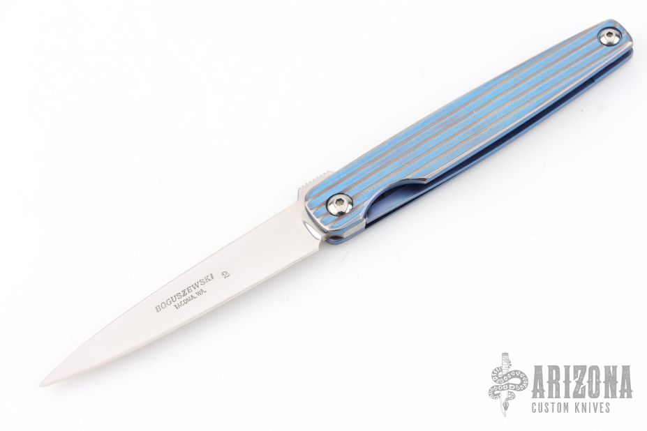 Phil Boguszewski began making knives in 1979. Phil's flippers have become a benchmark in the industry and are known for their effortless, smooth and fast opening. His fit and finish are superb and he is widely regarded as one of the best flipper knifemakers ever .He joined the Knifemakers’ Guild as a probationary member in 1984 and became a voting member in 1986. Phil passed away in 2013.
