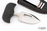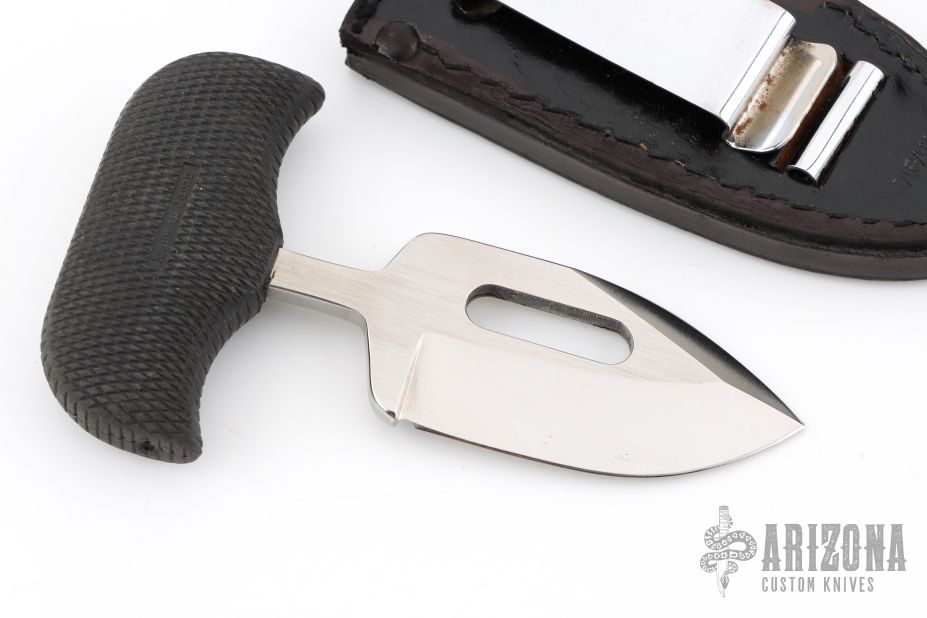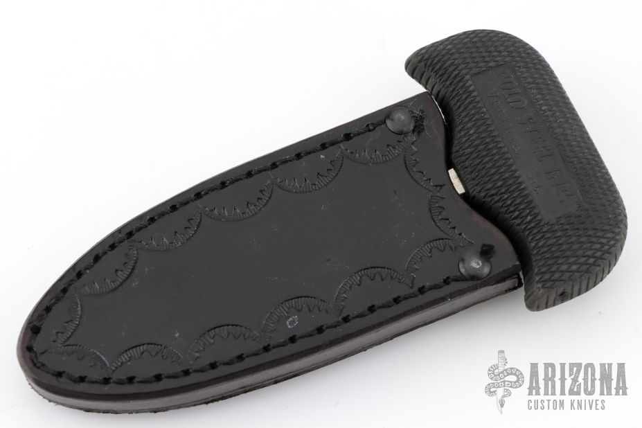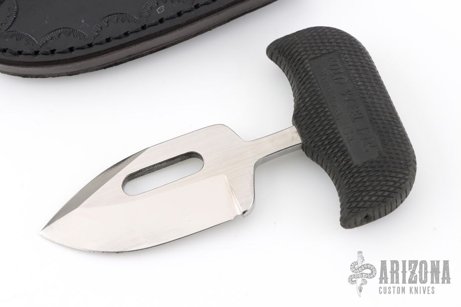 This "Urban Skinner" Push Dagger by Cold Steel has a satin finished spear point blade with a sharpened top edge, hidden tang, .185" blade stock, 1.296" depth. Handle is non-slip polymer. Has a couple very light scratches, otherwise excellent condition. Comes with black leather sheath with clip.