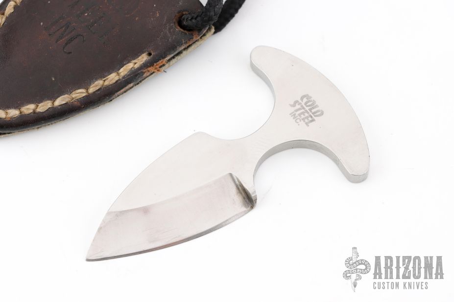 This Urban Pal by Cold Steel comes with a brown leather neck sheath. Mirror polished chisel ground blade, .175" blade stock and 1" blade depth, integral construction. Has some scratches, otherwise good condition.