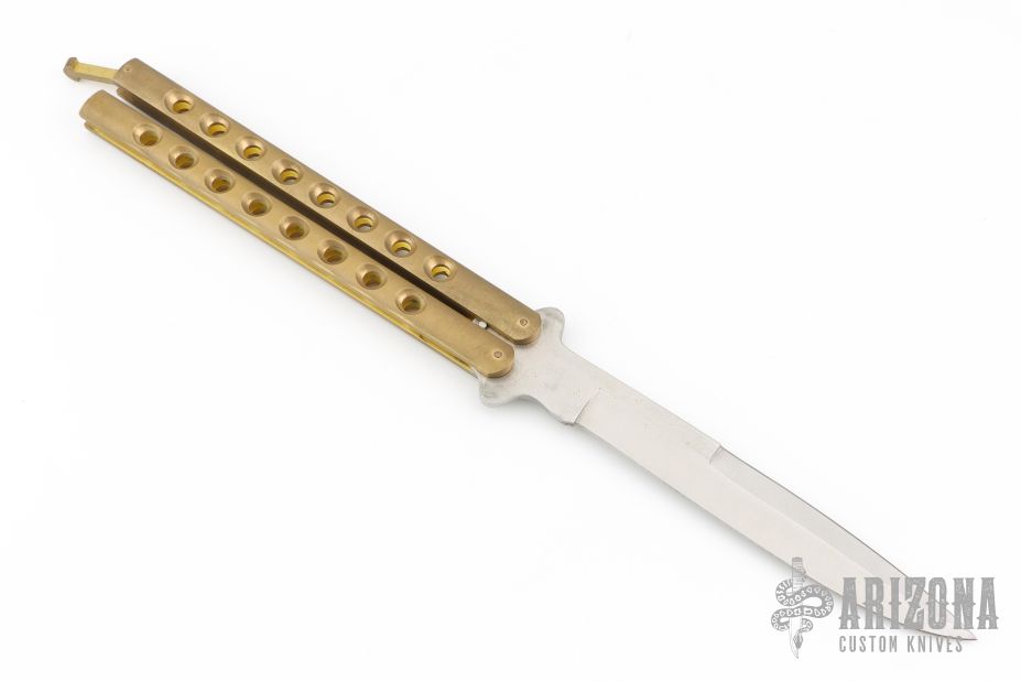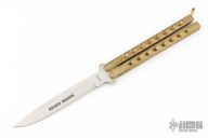 This Large Golden Dragon is a 1980's classic Taylor/Seto Balisong with brass handles. Has a satin finished blade with a false top edge. Has some light scratches, otherwise excellent condition for its age. comes with original box.