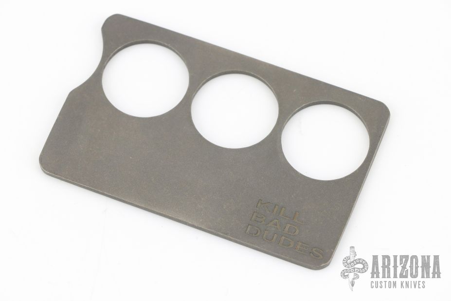 "Kill Bad Dudes" Credit Card Knuckles by Half Face Blades. .095" thick stonewashed titanium. Excellent condition.