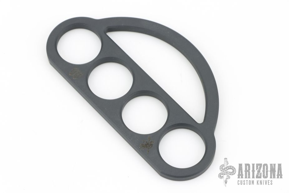 "We Kill Bad Dudes" 4-Finger Knuckles by Half Face Blades. .221" thick black titanium. Excellent condition.