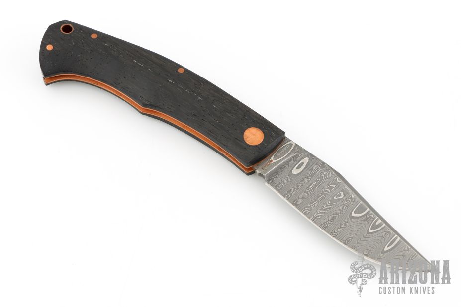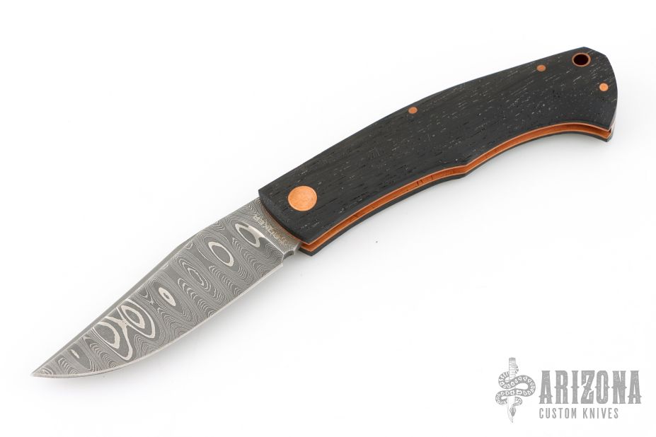 - Clip point blade made of Steam Engine Riptide Damascus steel.