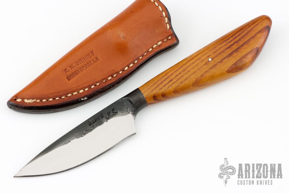 I started forging knives in 1989 from springs and in 1993 I found out that they made high carbon flat bar. I did stock removal for a while and now do mostly forging. I forge my knives from a round bar of 52100 that is from 3/8″ up to 1 3/4″ diameter. In the last few years, I have been making a style of knives that I consider both useful and simple in design. It is also a very beautiful knife style and has recently seen a surge in its popularity. This knife is the integral style knife. Most are of hidden tang construction as that seems to be the simplest design for a using knife. Small handle to metal contact area and less weight when used for long periods of time. I am a member of the American Bladesmith Society, the Alabama Forge Council, A.F.&A.M., the Knife Group Association, the Kansas Custom Knifemakers Association, the Arizona Knife Collectors Association, and the Cherokee Nation of Oklahoma.