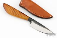 "I started forging knives in 1989 from springs and in 1993 I found out that they made high carbon flat bar. I did stock removal for a while and now do mostly forging." Ray is an ABS Mastersmith.