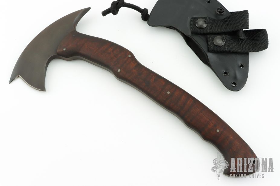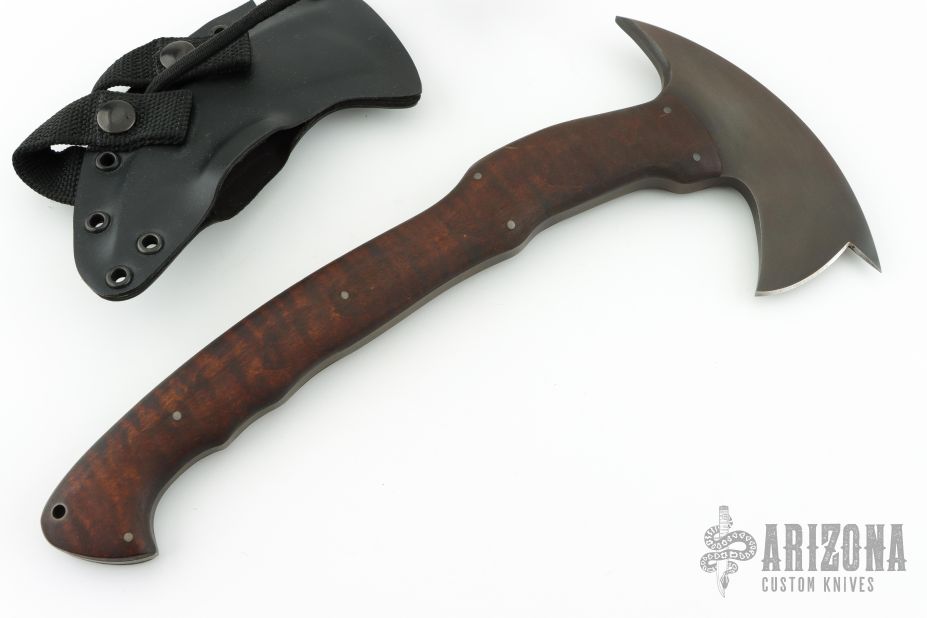 The WKII RnD Sayoc is intended for concealment, or as part of a lightweight bug-out bag. It is a quick handling and powerful tool that can make a difference in out of the ordinary situations. The WK RnD Axe Series is a collaborative design between Master Bladesmith Daniel Winkler and skilled Sayoc Kali martial arts trainer Rafael Kayanan. The handle design provides a standard grip position, as well as a secondary close quarter grip that was developed to emulate the feel of a handgun grip. The optional front spike is a valuable feature in combat usage. Axe Specifications Axe steel: 80CrV2 Black oxide no-glare finish. Sheath Fast draw carrier Lined Kydex® HD shockcord quick-release retention system. Excellent condition. Comes with original box and papers.
