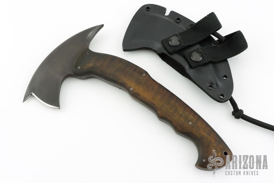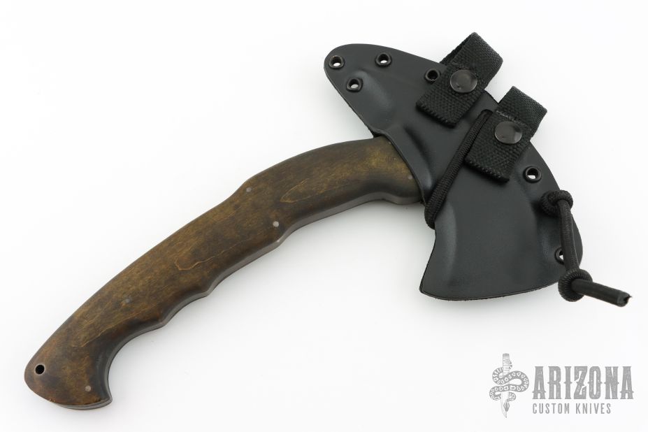 The WK RnD Axe Series is a collaborative design between Master Bladesmith Daniel Winkler and skilled Sayoc Kali martial arts trainer Rafael Kayanan. The handle design provides a standard grip position, as well as a secondary close quarter grip that was developed to emulate the feel of a handgun grip.