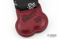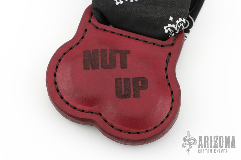 Shut Up Nut Up Bandanna Sap by Brian Schellenger. Brian works in the Chattanooga Leatherworks Shop. Red Leather with two lead lobes inside. Excellent condition.