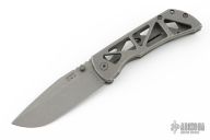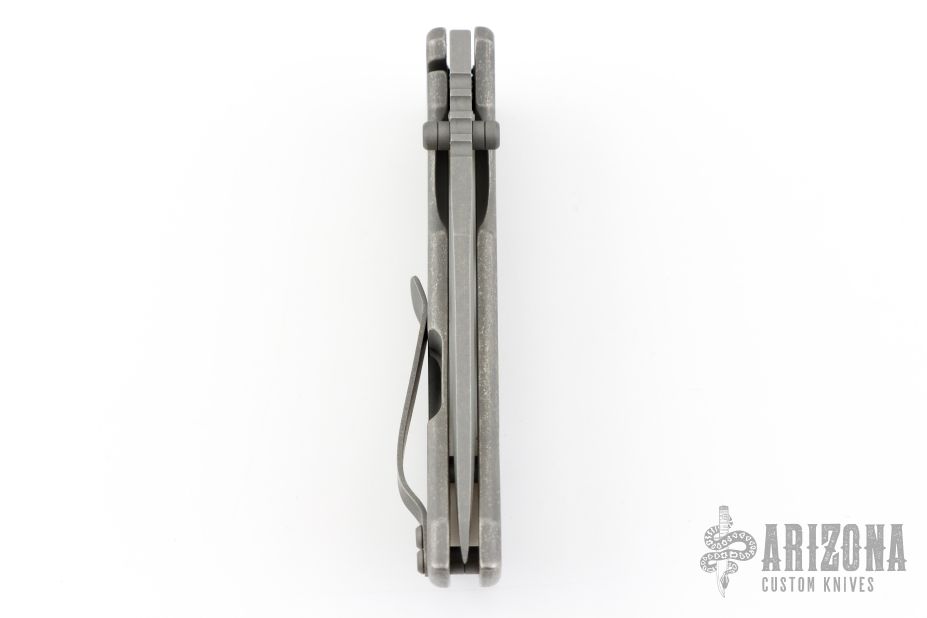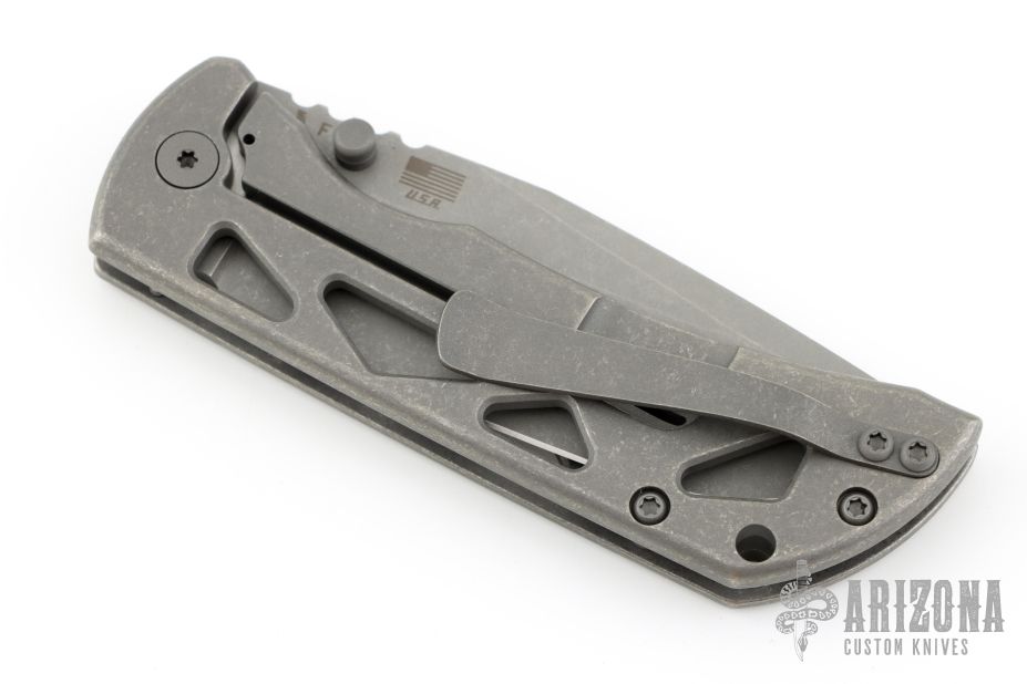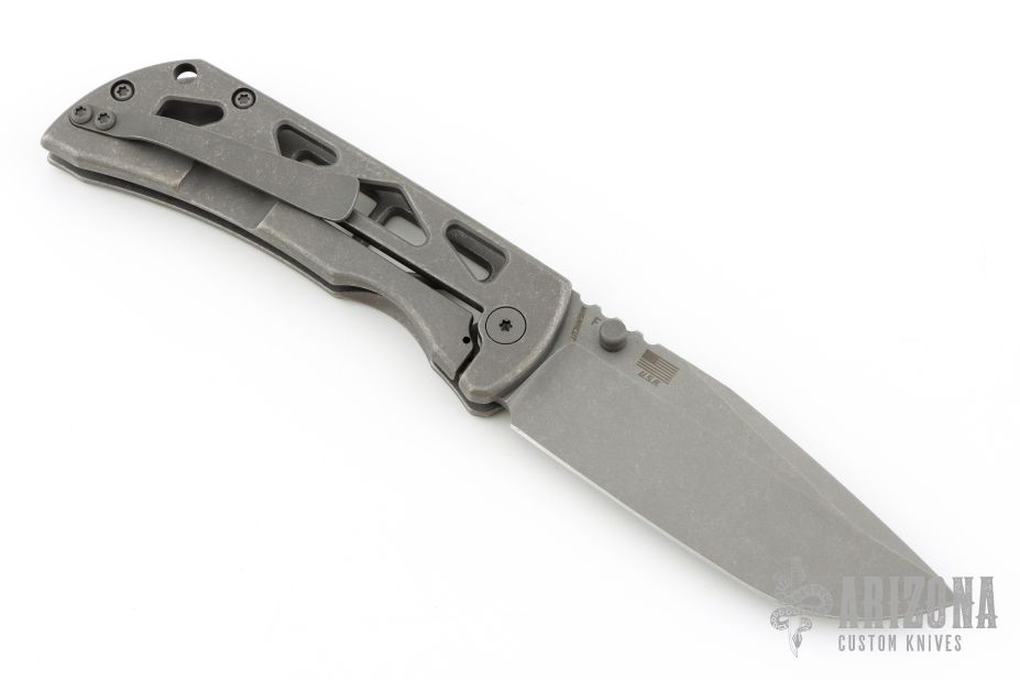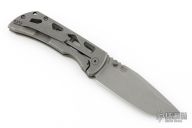 This MAC2 features a stonewashed drop point Magnacut blade with dual thumbstuds and a notched thumbrest.  The handle features a stonewashed skeletonized titanium frame with a matching tip up pocket clip. Comes with original box and papers. Excellent condition.