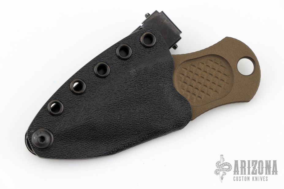 This lapel dagger by Half Face Blades features a bronze Cerakote S45VN blade and integral handle.150" blade stock and full tang construction. Comes with a kydex sheath with clip.